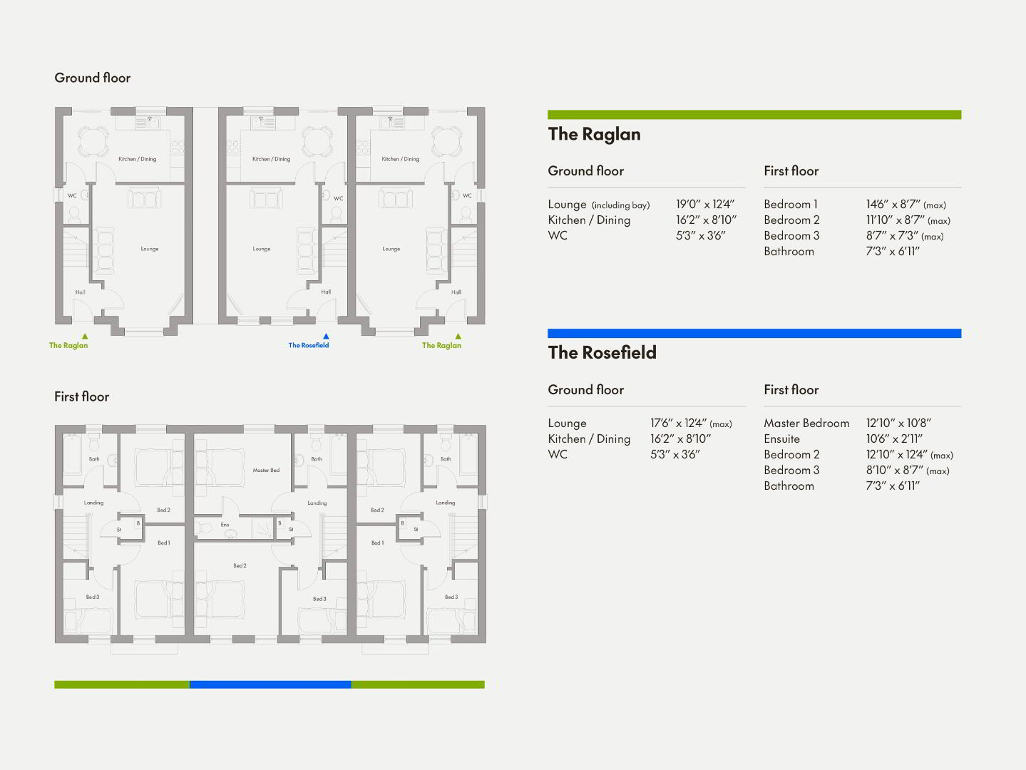 The Rosefield is a stylish three-bedroom townhouse thoughtfully designed for modern living across two well-planned floors. The ground floor features a generous lounge, a contemporary kitchen and dining space ideal for everyday living and entertaining, and a convenient WC.